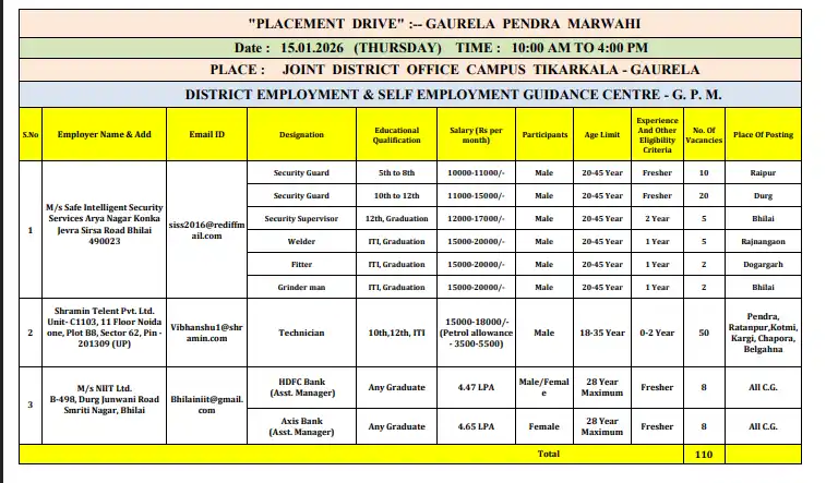 गौरेला-पेंड्रा-मरवाही प्लेसमेंट कैंप 2026