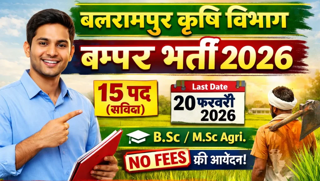 बलरामपुर कृषि विभाग भर्ती 2026: 15 विभिन्न पदों पर संविदा भर्ती, यहाँ देखें पूरी जानकारी!