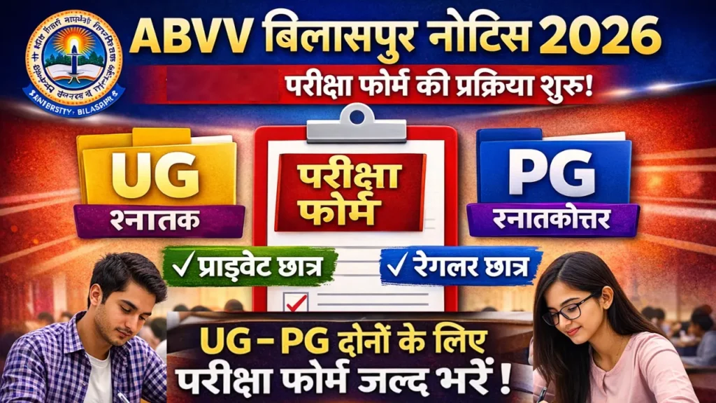 हेलो दोस्तों! अगर आप अटल बिहारी वाजपेयी विश्वविद्यालय (बिलासपुर यूनिवर्सिटी) के छात्र हैं या इससे संबद्ध किसी कॉलेज में पढ़ते