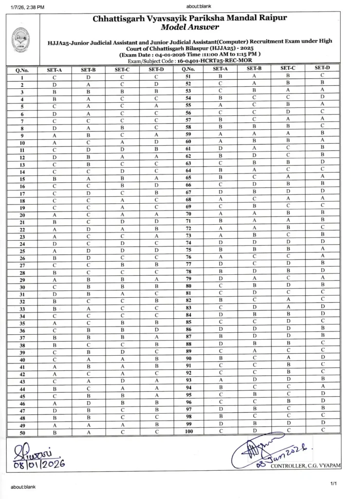 व्यापम ने परीक्षा के प्रश्न पत्र के मॉडल उत्तर अपनी आधिकारिक वेबसाइट पर 08 जनवरी 2026 को अपलोड कर दिए हैं। आप नीचे दिए गए स्टेप्स का पालन कर उत्तर देख सकते हैं: