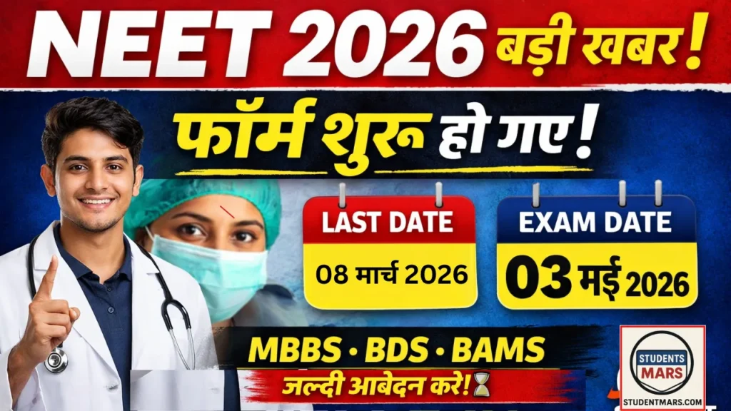 हेलो दोस्तों! अगर आप मेडिकल के क्षेत्र में अपना करियर बनाना चाहते हैं, तो आपके लिए साल की सबसे बड़ी खबर आ चुकी है। नेशनल टेस्टिंग एजेंसी (NTA) ने NEET (UG) – 2026 के लिए ऑनलाइन आवेदन शुरू कर दिए हैं।