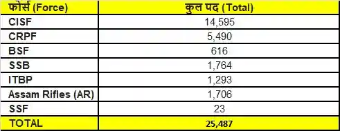 - 25,487 पद (BSF, CISF, CRPF, ITBP, SSB, Assam Rifles, SSF आदि में)